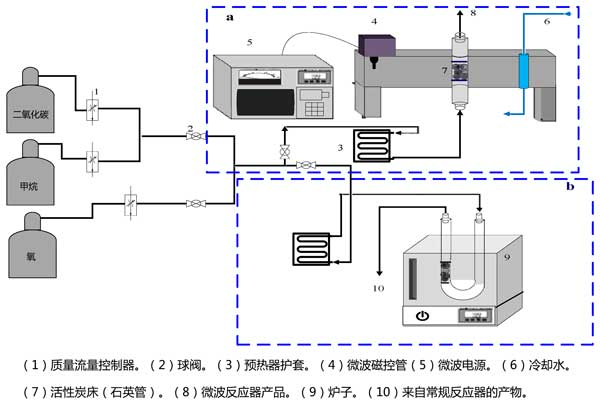 ¡¡¡¡Î¢²¨ÉèÖÃÈçͼ1Ëùʾ¡£¸ÉÖØÕû·´Ó¦Ôڹ̶¨´²Ê¯Ó¢¹ÜÖнøÐС£½«»îÐÔÌ¿ÖÃÓÚ²¨µ¼Í¨µÀÖв¢Í¨¹ý΢²¨¼ÓÈÈÖÁ·´Ó¦Î¶ȡ£Ê¯Ó¢ÃÞÓÃÓÚµ÷½Ú´ß»¯¼Á´²ÔÚ²¨µ¼Í¨µÀÖÐÐĵÄλÖá£Ê¹ÓÃÈÈ·ç»úͨ¹ý»îÐÔÌ¿Ç°ÃæµÄ¿ª´°²âÁ¿´ß»¯¼Á´²µÄζȡ£ÔÚʵÑé֮ǰУ׼ÈÈǹ¡£¸Ãϵͳ´¦ÓÚ´óÆøÑ¹Ï£¬²¢ÇÒÊ©¼ÓµÄ΢²¨¹¦Âʱ»É趨Ϊ¸Ä±ä»îÐÔÌ¿µÄζȡ£ÔÚ´ß»¯·´Ó¦Ö®Ç°£¬»îÐÔÌ¿ÔÚ600¡æÏ»¹Ô2Сʱ£¬ÇâÆøÁ÷ËÙΪ50ºÁÉý/·ÖÖÓ¡£½«»îÐÔÌ¿¼ÓÈÈÖÁ·´Ó¦Î¶Ⱥ󣬽«¼×ÍéºÍ¶þÑõ»¯Ì¼(1£º1)µÄ»ìºÏÎ×ÜÁ÷ËÙΪ500ºÁÉý/·ÖÖÓ£¬ÔÚµç¯ÖмÓÈÈ£¬×îºó¼ÓÈë´ß»¯¼Á´²¡£½øÁÏÒýÈëºóÔ¼30·ÖÖÓ£¬µ±²úÆ·µÄŨ¶È±äµÃÎȶ¨£¬¸ÃÆøÌå²úÎïÈ¡Ñù²¢ÓÃÅäÓвÐÓàÆøÌå·ÖÎöÒÇµÄÆøÏàÉ«Æ×ÒǽøÐзÖÎö¡£½«²úÎïÈ¡ÑùÖØ¸´Èý´Î£¬µÃµ½ºÏÀíµÄ׼ȷ¶È(²îÒìСÓÚ1%)¡£