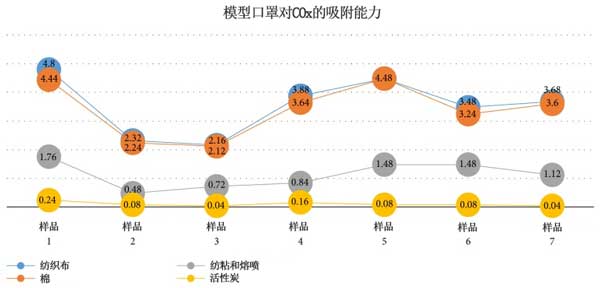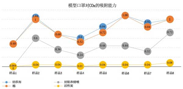 ¡¡¡¡»îÐÔÌ¿×éºÏ¿ÚÕÖÄ£ÐÍ×éÔÚÎüÊÕCOx·½Ãæ±ÈÆäËû¿ÚÕÖÄ£Ð;ßÓиü¸ßµÄÄÜÁ¦¡£²»Ê¹ÓÿÚÕÖ/¿ØÖÆ3.40 ppm(ÎüÈëÆøÌå)¼ì²âCOx·ÏÆøÅŷŵį½¾ù½á¹û¸ßÓÚʹÓÃÆäËû¿ÚÕÖ£¬¼´ÃÞ²¼²ÄÁÏ3.39 n/mm3£¬·ÄÕ³ºÍÈÛÅç1.13 ppmÒÔ¼°0.10ppmµÄ»îÐÔÌ¿×éºÏ²ÄÁÏ£¬·ÄÕ³ºÍÈÛÅçµÄ¿ÚÕÖ(²Î¼ûͼ1)¡£