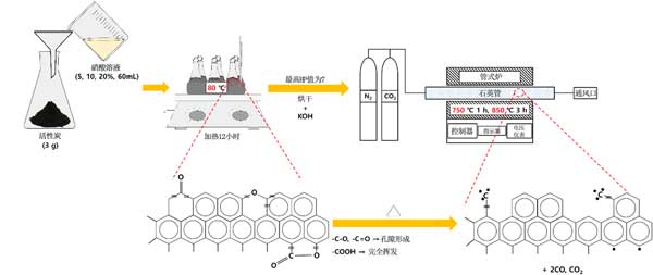 ¡¡¡¡Í¼1£ºÍ¨¹ýÏõËá´¦ÀíºÍ»î»¯»îÐÔÌ¿µÄ³ÌÐòºÍÄ¿µÄ¡£