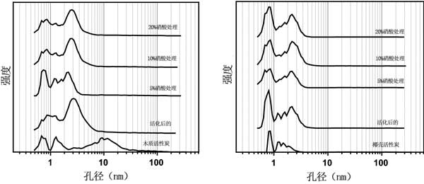 ¡¡¡¡Í¼3£ºÓÃÏõËáºÍ»î»¯´¦ÀíµÄ»îÐÔÌ¿µÄ¿×¾¶·Ö²¼¡£