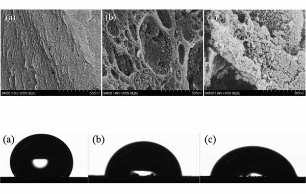 ¡¡¡¡Í¼1ÖеÄFE-SEMͼÏñÏÔʾ»îÐÔÌ¿ºÍ¸ÄÐÔ»îÐÔÌ¿ºÍ¶þÔª»ìºÏÎï¸ÄÐÔ»îÐÔ֮̿¼äµÄ²»Í¬ÐÎ̬¡£Í¼1aÖлîÐÔÌ¿µÄͼÏñÏÔʾ±íÃæÉϵĴֲڶȺʹó¿×£¬¶ø¸ÄÐÔ»îÐÔÌ¿ÔÚÆä±íÃæÉÏ¿´ÆðÀ´¹â»¬£¬´øÓÐÒ»²ã±íÃæ»îÐÔ¼Á¡£´ËÍ⣬ͼ1cÖеĶþÔª»ìºÏÎï¸ÄÐÔ»îÐÔÌ¿ÑùÆ·ÏÔʾ³ö¸ß¶È¹â»¬µÄ±íÃæ£¬²¢ÇÒ±íÃæ²ãµÄ±¥ºÍ¶È¸ßÓÚͼ1bÖеĸÄÐÔ»îÐÔÌ¿ÑùÆ·¡£ËùÓÐÕâЩ¹Û²ì½á¹û¶¼°µÊ¾Á˱íÃæ»îÐÔ¼ÁºÍ»îÐÔÌ¿±íÃæÖ®¼äͨ¹ýÊèË®Ï໥×÷Ó᣽Ӵ¥½Ç²âÁ¿½ÒʾÁË»îÐÔÌ¿ºÍ¸ÄÐÔ»îÐÔÌ¿µÄÈóʪÐÐΪ£¬ÊèË®ÐÔºÍÇ×Ë®ÐÔÇ¿¶ÈµÄ±ä»¯¡£Ç°½øºÍºóÍ˽Ӵ¥½Ç¶¼±íÏÖ³öÀàËÆµÄ±íÃæÈóʪÐÔÇ÷ÊÆ¡£½Ó´¥½ÇµÄÖµÏÔʾÁËÈóʪÐÔµÄ˳Ðò¶þÔª»ìºÏÎï¸ÄÐÔ»îÐÔÌ¿>¸ÄÐÔ»îÐÔÌ¿>»îÐÔÌ¿¡£¶þÔª»ìºÏÎï¸ÄÐÔ»îÐÔÌ¿ÈóʪÐԵĸ߶ȸıä¿É¹éÒòÓÚÍÂÎÂ80¾ßÓиßÈóʪÄÜÁ¦¡£Óü¾ï§±íÃæ»îÐÔ¼Á¸ÄÐԵĻîÐÔÌ¿ËáÑαíÃæµÄÈóʪÐÔ·¢ÉúÁËÏÔ×ű仯¡£