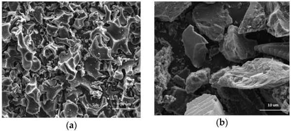¡¡¡¡Í¼1£ºÍ¨¹ýÓÃ(a)ÇâÑõ»¯¼ØºÍ(b)Á×Ëữѧ»î»¯»îÐÔÌ¿µÄ΢¹Û½á¹¹£¬Í¨¹ýSEM·ÖÎö¹À¼Æ¡£