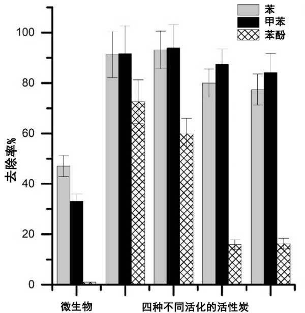 ¡¡¡¡»îÐÔÌ¿ÔØÎ¢ÉúÎï´ÓÓÍÑÎË®ÈéÒºÖÐÈ¥³ý·¼ÌþµÄÄÜÁ¦Èçͼ2Ëùʾ¡£ÔÚÓë³£¹æµÄÇâÑõ»¯¼Ø»îÐÔÌ¿±»ÓÃ×÷¶ÔÕÕ¡£ÌرðÊÇ£¬Ê¹Ó󣹿µÄ»îÐÔÌ¿£¬±½ºÍ¼×±½µÄÎü¸½Ð§ÂÊ´óÓÚ90%£¬¶øËüÃÇÎü¸½±½·ÓµÄÄÜÁ¦Ð¡ÓÚ70%¡£¿ÉÒÔͨ¹ý¿¼ÂÇÎü¸½ÎïÖ®¼äµÄ¼«ÐÔ²îÒìÀ´½âÊÍÕâЩ½á¹û¡£Ê¹ÓûîÐÔÌ¿ºÍÔØÎ¢ÉúÎï»îÐÔÌ¿µÄ±½·ÓÈ¥³ýЧÂÊÖ®¼äµÄ±È½ÏÏÔʾÁËͨ¹ý΢ÉúÎï¹Ì¶¨Ð޸ĻîÐÔÌ¿¿×϶¿Õ¼äµÄ·½Ê½¡£ÓÉÓÚÊ©Êϼٵ¥°û¾úÏûºÄ±½·ÓµÄÄÜÁ¦½ÏµÍ£¬Òò´ËÈ¥³ýÑϸñÏÞÓÚÎü¸½¹ý³Ì¡£