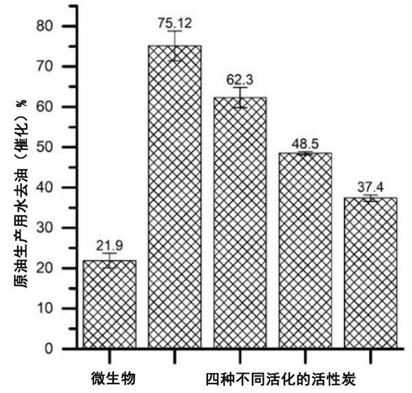 ¡¡¡¡Í¼3£ºÔÓÍͨ¹ýÓкÍûÓÐÓëÈý¾ÛÇè°·¹ÙÄÜ»¯ºÍ΢ÉúÎïÓÉÇâÑõ»¯¼Ø»¯Ñ§»î»¯ÖƱ¸µÄ»îÐÔÌ¿³ýÈ¥¡£