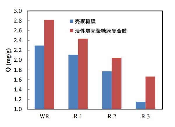 ¡¡¡¡»îÐÔÌ¿ÔÙÉú¹ý³ÌÊǹ¤ÒµÖеÄÖØÒªÒòËØÖ®Ò»£¬¿ÉÒÔ¶à´ÎʹÓÃÎü¸½¼Á£¬ÄÜÈ÷ÏË®´¦Àí±äµÃ¸ü¼Ó¾¼Ã¡£Í¨¹ý½«»îÐÔÌ¿½þÈë0.001 NµÄHNO3ÖÐÀ´Íê³ÉÔÙÉú¹ý³Ì¡£´ÓÈÜÒºÖзÖÀë³öÔÙÉúµÄ»îÐÔÌ¿£¬²¢Ï´µÓÖÁÖÐÐÔpH¡£È»ºó½«Îü¸½¼Á¸ÉÔï²¢ÖØÐÂÓÃÓÚÎü¸½¹ý³Ì¡£ÔÚÕâÏ×÷ÖУ¬¶Ô¿Ç¾ÛÌǺͻîÐÔÌ¿¿Ç¾ÛÌǸ´ºÏĤ½øÐÐÁËÔÙÉú¡£»ñµÃµÄ½á¹ûÈçͼ3Ëùʾ¡£ÔÚËùÓÐÑ»·ÖУ¬»îÐÔÌ¿¿Ç¾ÛÌǸ´ºÏĤµÄÎü¸½ÄÜÁ¦¾ù¸ßÓڿǾÛÌÇĤ¡£Ö¤ÊµÁ˿ǾÛÌÇĤÖеĻîÐÔÌ¿º¬Á¿Ìá¸ßÁ˿ǾÛÌÇĤ¶ÔCd2 +µÄÎü¸½ÐÔÄÜ¡£¸Ã¸Ä½ø¶ÔÓÚ¹¤Òµ·ÏË®´¦ÀíÖеÄÓ¦ÓþßÓÐÖØÒªÒâÒå¡£