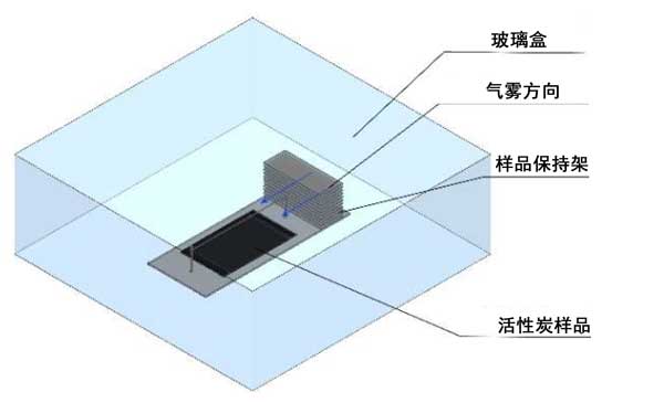 活性炭关于电场附增强吸附测试设备,由一个样品架组成,样品架放置在一个33厘米×33厘米×12厘米的带有硼硅酸盐玻璃壁的盒子内(图3)。风扇(位于偏转板后面)引起平行的空气通量到样品。在细的(直径为180 µm)钨丝电极(放电电极)上施加正电势,而相对电极(活性炭)通过两端的两个接地连接接地。