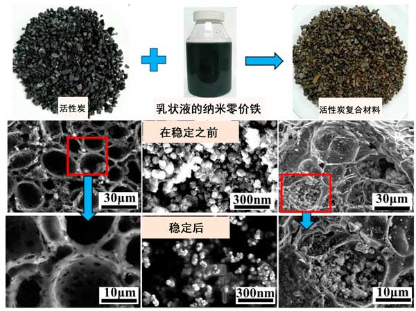 ¡¡¡¡Í¼2£º»îÐÔÌ¿£¬ÄÉÃ×¼¶Áã¼ÛÌú¿ÅÁ£ºÍ»îÐÔÌ¿¸´ºÏ²ÄÁϵĺê¹ÛͼºÍSEMÏÔ΢ͼ¡£