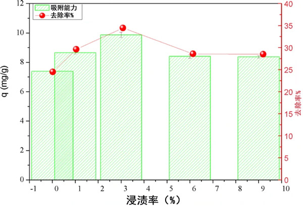 ¡¡¡¡ÎªÁËÆÀ¹À¸÷ÖÖ½þ×ÕÂʶԸÄÐÔ»îÐÔÌ¿µÄÁ×ËáÑÎÎü¸½ÄÜÁ¦µÄÓ°Ï죬ÔÚ²»Í¬µÄÄÉÃ×Òø¿ÅÁ£/»îÐÔÌ¿ÖÊÁ¿±È(1%£¬3.0%£¬6.0%ºÍ9.0%)Ï£¬ÒÔÔʼ»îÐÔÌ¿ºÍ¸ºÔØÄÉÃ×Òø¿ÅÁ£µÄ»îÐÔÌ¿½øÐÐÁ˳õ²½ÊµÑé¡£ ¡£ÔÚÕâÏîÑо¿ÖУ¬ÊµÑéÊÇÔÚ25±2°CµÄζÈÏ£¬³õʼÁ×ËáÑÎŨ¶ÈΪ30 mg/L£¬Îü¸½Ê±¼äΪ60·ÖÖÓ£¬Îü¸½¼ÁÁ¿Îª1.2 g / L½øÐеġ£