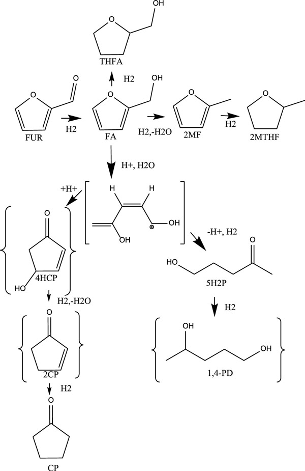 ¡¡¡¡ÔÚÏÂÒ»×éʵÑéÖУ¬È·¶¨ÁËÒºÌåÍ£Áôʱ¼ä¶Ô¿·È©¼ÓÇⳬ¹ý0.8%»îÐÔÌ¿´ß»¯¼ÁµÄÓ°Ïì(H 2ÆøÁ÷±£³Öºã¶¨ÔÚ100 mL/min)¡£¿·È©×ª»¯ÂÊËæ×ÅҺʱ¿ÕËÙµÄÔö¼Ó»òÍ£Áôʱ¼äµÄËõ¶Ì¶øÏ½µ£¬Ì¼·â±ÕÂÊÔÚ74%ÖÁ100%Ö®¼ä¡£Î¶ȣ¬Ñ¹Á¦ºÍÒºÌåÍ£Áôʱ¼äЧӦÑо¿µÄ½á¹û±íÃ÷£¬»îÐÔÌ¿´ß»¯¼ÁÖ÷Ҫͨ¹ý¿·È©´Ù½øÁË¿·È©Öп·´¼ºÍ2-¼×»ù߻૵ÄÐγɣ¬²¢Í¨¹ýÍÆ²âÐÔ·´Ó¦Í¾¾¶´Ù½øÁË»·ÎìͪºÍ5-ôÇ»ù-2-ÎìͪµÄÉÙÁ¿Ðγɣ¬ÐèÒª¶Ôͪ½øÐÐËá´ß»¯)ÐγÉ(ͼ3)¡£