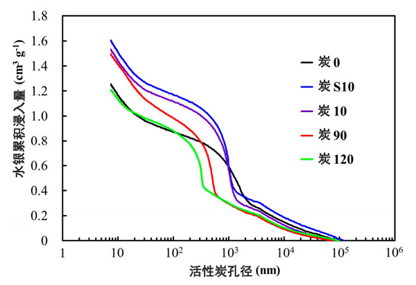 ¡¡¡¡Í¼3£ºÊ¹ÓÃË®ÒøÑ¹Èë¿×϶ÂÊ·¨»ñµÃµÄʹÓÃÇòÄ¥»îÐÔÌ¿µÄÅÌʽEDLCµç¼«µÄÀÛ»ý¿×Ìå»ý¡£