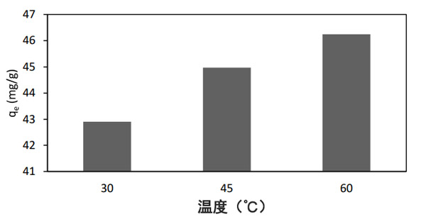 ¡¡¡¡Î¶ȶÔÎü¸½¹ý³ÌÓÐÏÔ×ÅÓ°Ï죬ÒòΪζȵı仯»áÒýÆðÎü¸½¼Á¶ÔÌØ¶¨Îü¸½ÎïµÄƽºâÎü¸½ÄÜÁ¦µÄ±ä»¯¡£Òò´Ë£¬Èçͼ3Ëùʾ£¬Í¨¹ý½«ÈÜҺζȴÓ30-60°C¸Ä±äÀ´Ñо¿ÈÜҺζȶÔȾÁÏÈ¥³ýµÄÓ°Ïì¡£Ëæ×ÅζȴÓ30-60Éý¸ß£¬¶Ô¼×»ù»ÆµÄÎü¸½ÈÝÁ¿´Ó42.9 mg/gÔö¼Óµ½46.2 mg/g¡£Î¶ȱíÃ÷Îü¸½·´Ó¦±¾ÖÊÉÏÊÇÎüÈȵġ£ÖÚËùÖÜÖª£¬ÓÉÓÚÈÜÒºÕ³¶ÈµÄ½µµÍ£¬Î¶ÈÉý¸ß»áÔö¼Ó±»Îü¸½Îï·Ö×ÓÔÚÍâ±ß½ç²ãÒÔ¼°ÔÚ»îÐÔÌ¿¿ÅÁ£ÄÚ²¿¿×ÖеÄÇ¨ÒÆÂÊ»òÀ©É¢ËÙÂÊ¡£