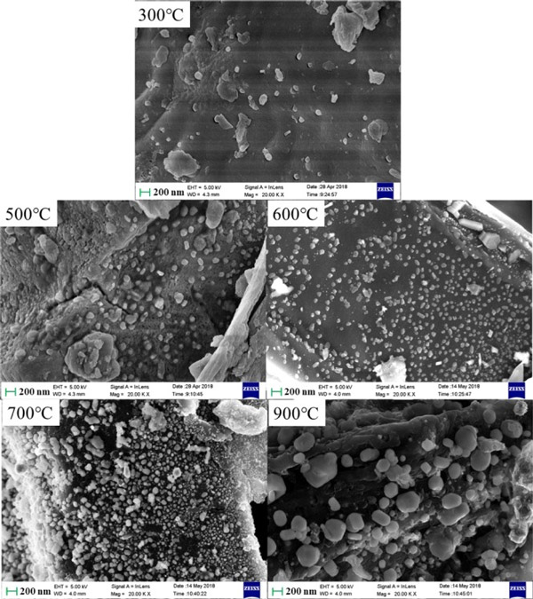 ¡¡¡¡Í¼1£ºÔÚ²»Í¬Î¶ÈÏÂÉú²úµÄ»îÐÔ̿ɨÃèµç×ÓÏÔ΢¾µÍ¼Ïñ¡£