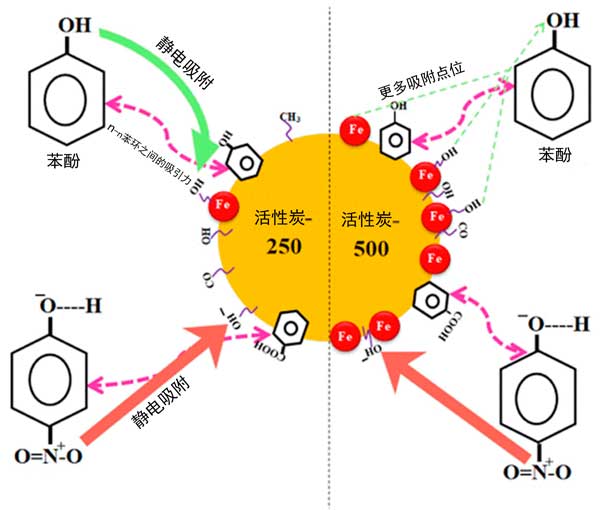 ¡¡¡¡Í¼1£ºÍ¨¹ýÇâ¼üºÍπ-πÏ໥×÷Óý«·ÓÀàÎü¸½µ½»îÐÔÌ¿ÉϵĻúÀí¡£