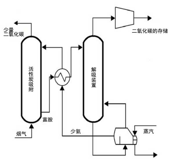 ¡¡¡¡ÊÕ¼¯¶þÑõ»¯Ì¼µÄÖ÷Òª·½·¨·ÖΪÎüÊÕ£¬Îü¸½£¬µÍΣ¬Ä¤ºÍ΢ÉúÎïѧ¡£Î¢ÉúÎïºÍµÍιý³Ì²¢²»¹ã·º¡£Í¼1ÏÔʾÁËʹÓõ¥ÒÒ´¼°·ÎüÊÕµÄÑ̵ÀÆø¾»»¯·½°¸¡£Îü¸½¹ý³ÌÔÚ40-60¡æµÄζȺʹóÆøÑ¹Ï½øÐС£µ±´ïµ½Æ½ºâʱ£¬¸»º¬CO2µÄÈÜÒº½øÈëÔÙÉú¹ý³Ì£¬¸Ã¹ý³ÌÔÚ100-140°CµÄζÈϽøÐС£È»ºó½«ÈܼÁÀäÈ´²¢ÔÙÑ»·¡£¸Ã¼¼Êõ±»ÈÏΪÊÇÓÐЧµÄ²¢Çҹ㷺ʹÓ㬵«ÊÇËü¾ßÓÐһЩȱµã£¬ÀýÈçÉ豸¸¯Ê´¡£ÁíÍ⣬ÓÉÓÚ¶þÑõ»¯Ì¼ºÍµ¥ÒÒ´¼°·µÄ¸ßÏ໥×÷Óã¬ÔÙÉú¹ý³ÌÒÔ¸ßÄܺĽøÐС£