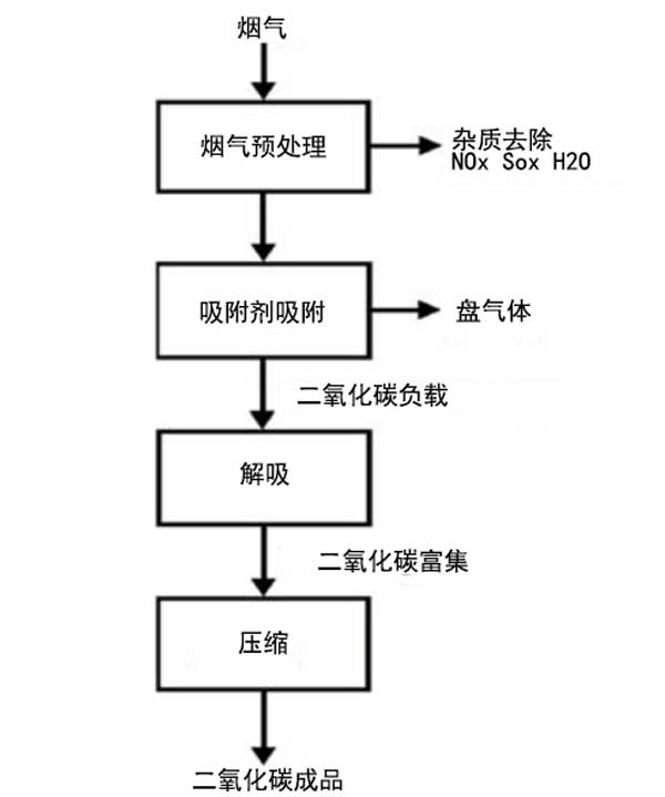 ¡¡¡¡¶þÑõ»¯Ì¼µÄÎü¸½¼¼ÊõµÄ¼ò»¯Í¼ÔÚͼ¶þÏÔʾ¡£Ê×ÏȽ«ÑÌÆøÖеÄË®·Ö£¬ÁòºÍµªÑõ»¯Îï¾»»¯¡£È»ºó£¬ËùÖÆ±¸µÄÆøÌå½øÈëʹÓùÌ̬Îü¸½¼ÁµÄÎü¸½½×¶Î£¬ÀýÈç»îÐÔÌ¿£¬·Ðʯ£¬½ðÊôÓлú¹Ç¼Ü£¬¶à¿×¾ÛºÏÎ»ùÓÚ¼î½ðÊôºÍ°·µÄ̼ËáÑεĹÌÌå²ÄÁÏ£¬Ì¼ÇòµÈ¡£Ö®ºó£¬Îü¸½¼Á½øÈë½âÎü½×¶Î£¬Ôڴ˽׶ÎÊͷųö¸»º¬CO2µÄÆøÌå»ìºÏÎȻºóÔÚѹÁ¦Ï½«ÆäѹËõ¡£¸Ã¼¼ÊõµÄÓŵãÊǶþÑõ»¯Ì¼ÝÍȡЧÂʸߣ¬ÔÙÉú³É±¾µÍÒÔ¼°Îü¸½¼Á²Ù×÷µÄÎȶ¨ÐÔ¡£»îÐÔÌ¿¶ÔCO2ºÍN2µÄÎü¸½ÄÜÁ¦ºÜ¸ß£¬¾ßÓв»Í¬ÓÚ·ÐʯµÄ´ó±È±íÃæ»ý£¬²¢ÇÒ»¹¿ÉÒÔÔÚ³±ÊªÌõ¼þϹ¤×÷¡£¶øÇÒ£¬»îÐÔÌ¿±È·Ðʯ¾ßÓиüµÍµÄÎü¸½ÈÈ£¬Òò´ËËüÃÇ¿ÉÒÔ¸üÈÝÒ×µØÔÙÉú¡£Òò´Ë£¬ÔÚ25°CºÍ1barµÄζÈÏ£¬»îÐÔÌ¿µÄÎü¸½ÈÈΪ3kJ£¬¶ø·ÐʯΪ30kJ¡£ÊÕ¼¯¶þÑõ»¯Ì¼µÄÎü¸½¼ÁÖÊÁ¿µÄÖØÒªÖ¸±êÖ®Ò»ÊǶþÑõ»¯Ì¼µÄÎü¸½Á¿¡£»ù±¾ÉÏ£¬ÔÚ¾²Ì¬Ìõ¼þϺͶ¯Ì¬Ìõ¼þ϶¼½øÐÐÎü¸½ÈÝÁ¿µÄÑо¿¡£