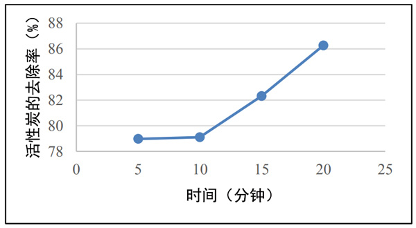 ¡¡¡¡Îü¸½Ê±¼ä²âÊÔ£º½«¶¹¸¯·ÏÒºÐÐÒµÑùÆ·ÈÜÒºÖÆ±¸µ½ËĸöÉÕ±ÖС£ÔÚÿ±ÖмÓÈë¶à´ï0.5¿ËµÄÒ¬¿Ç»îÐÔÌ¿¡£½Á°èϾ²ÖÃ5·ÖÖÓ£¬10·ÖÖÓ£¬15·ÖÖÓ£¬20·ÖÖÓ¡£Ö®ºó£¬ÓÃÒÆÒº¹ÜÎüÈ¡10mLÈÜÒº£¬È»ºó½«Æä·ÅÈëÊÔ¹ÜÖС£¼ÓÈë0.4mL±½·ÓÈÜÒº£¬0.4mLÏõÆÕÄÆ£¬1mLÑõ»¯ÈÜÒº¡£·ÅÖÃ1СʱÒÔ²úÉúÑÕÉ«¡£ÐγÉÑÕÉ«ºó£¬Ê¹ÓÃÂËÖ½½«»îÐÔÌ¿ÓëÑùÆ·ÈÜÒº·ÖÀë¡£µ¹Èë±ÈÉ«±£¬Ê¹Ó÷ֹâ¹â¶È¼Æ¶ÔÆä½øÐзÖÎö£¬¶ÁÈ¡²¢¼Ç¼ÆäÔÚ640nm²¨³¤´¦µÄÎüÊÕ¡£Ê±¼ä±ä»¯µÄÎü¸½ÓÃK2CO3»îÐÔÌ¿ºÍHCl»îÐÔÌ¿½øÐÐÁ½´Î¡£