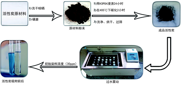 ¡¡¡¡Í¼1£º»îÐÔÌ¿ÖÆ×÷ÓëÎü¸½Á÷³Ì¡£