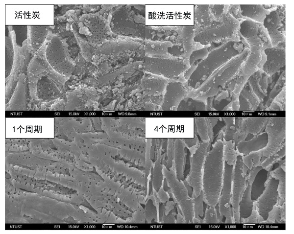 ¡¡¡¡Í¨¹ýËáÏ´µÄ»îÐÔÌ¿ºÍ»îÐÔÌ¿ÔÚÏÔʾͼ2ÖУ¬SEM³ÉÏñ»¹Í¸Â¶£¬ËáÏ´³ýÈ¥µÄÔÓÖÊ£¬´Ó¶ø²úÉúµÄ¿×½á¹¹¾ßÓÐÒ»¸ö¿´Ëƹ⻬µÄ±íÃæ¡£ÓëÔʼ»îÐÔÌ¿Ïà±È£¬ËáÏ´»îÐÔÌ¿µÄ±È±íÃæ»ýºÍ×Ü¿×Ìå»ýÂÔ´ó¡£Õâ¿ÉÄÜÊÇÔÚËáÏ´¹ý³ÌÖÐÈ¥³ýÁËÆäËû»¯Ñ§ÎïÖÊ(ÀýÈçÑõÆø)µÄÓ°Ï졣Ȼ¶ø£¬ËáÏ´ËÆºõ¶Ô»îÐÔÌ¿µÄ¿×¾¶¼¸ºõûÓÐÓ°Ïì¡£Ôʼ»îÐÔÌ¿ºÍÐÂÏÊ»îÐÔÌ¿µÄƽ¾ù¿×¾¶±íÃ÷£¬¾ø´ó¶àÊý¿×¶¼ÊôÓÚ΢¿×·¶Î§¡£
